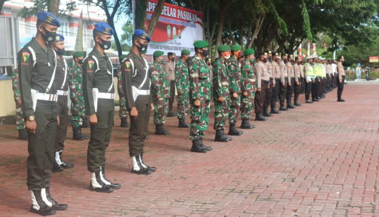 TerabasNews – Aceh Barat – Personel Kodim 0105/Abar melaksanakan gelar apel gabungan pasukan kedisiplinan tentang penggunaan masker bagi masyarakat bertempat di Mapolres Aceh Barat di Jln. Swadaya Gampong Drien Rampak Kecamatan Johan Pahlawan Kabupaten Aceh Barat, Senin (24/08/2020).