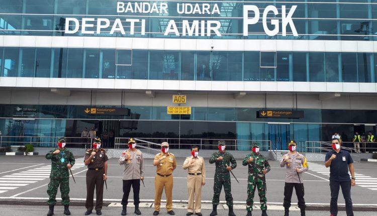 TerabasNews – Pangkalpinang – Danrem 045/Gaya Brigjen TNI M. jangkung Widyanto S.I.P M. Tr. (Han) bersama Forkopimda Provinsi Kepulauan Bangka Belitung menyambut Kedatangan Rombongan Bapak Menteri Pertanian RI Syahrul Yasin Limpo Ke Wilyah Provinsi Kepulauan Babel dalam rangka Kunjungan Kerja ke Desa Batu Betumpang kecamatan Pulau Besar Kabupaten Bangka Selatan di Bandara Depati Amir Pangkalan Baru, Selasa ( 25/8/2020).