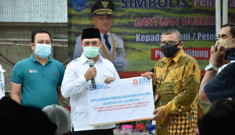 Bantuan diserahkan secara simbolis oleh Gubernur Kepulauan Bangka Belitung (Babel), Erzaldi Rosman di Lapangan Bola Dusun Rejosari kepada kelompok petani dan kelompok peternak.