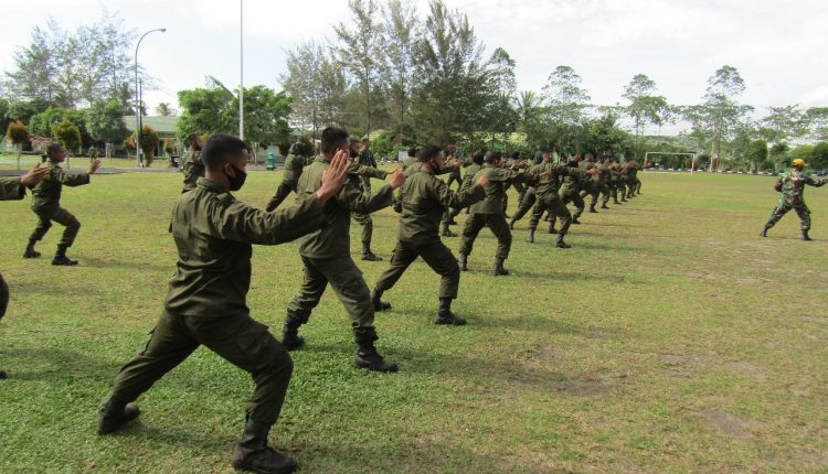 TerabasNews – Namang – sebanyak 39 orang Anggota Menwa yang sedang mengikuti Latihan Pendidikan Dasar (Diksar) Menwa Mahadepam Bangka Belitung diberi materi Bela Diri Militer oleh Korem 045/Gaya, kegiatan dilaksanakan di Lapangan Makorem 045/Gaya, kab Bangka Tengah, Jumat 11/09/20,
