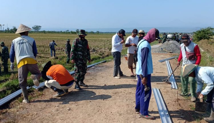 TerabasNews – KENDAL, Senin 14/09 – Pelaksanaan kegiatan Pra TNI Manunggal Membangun Desa (TMMD) Reguler Ke-109 di wilayah Kodim 0715/Kendal, hingga saat ini telah berlangsung kegiatan gotong royong mempersiapkan alat perlengkapan di bagian kanan kiri dan tengah jalan.