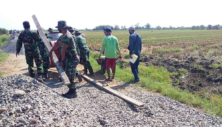 Terik Matahari di Lokasi TMMD, Tak Surutkan Semangat TNI dan Warga Langsir Material