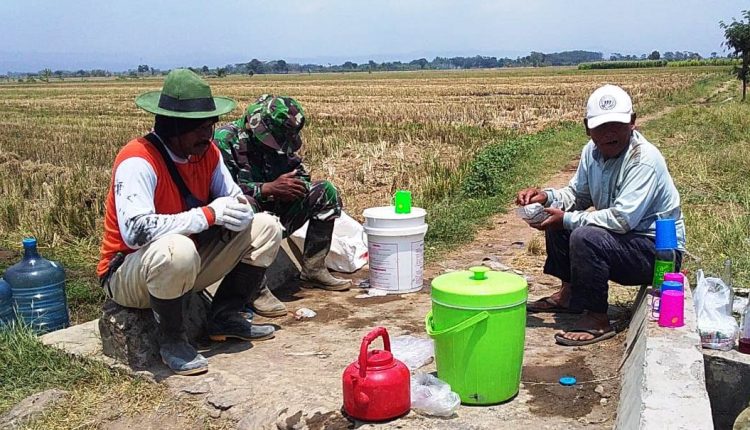 TerabasNews – KENDAL, Rabu 16/09 – Anggota Satgas TMMD ke-109 Kodim 0715/Kendal melepas lelah dengan canda tawa bersama masyarakat, terlihat tak ada batasan antara anggota Kodim 0715/Kendal Pelda Supriadi dan warga untuk mewujudkan impian miliki akses jalan yang bagus, Senin (14/9/2020).