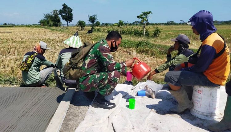 TerabasNews – KENDAL, Rabu 16/09 – Satgas TMMD Reguler ke – 109 tahun 2020 di Desa Sendang Kulon sedang istirahat sejenak turun minum melepas lelah setelah melaksanakan pengecoran jalan di Desa Sendang Kulon, Kecamatan Kangkung, Kabupaten Kendal, Senin (14/09/20).