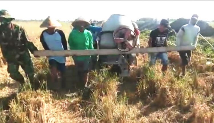Gotong Royong TNI Bersama Warga Pindahkan Mesin Molen