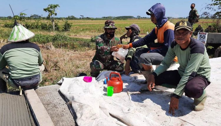 TerabasNews – KENDAL, Kamis 17/09- Sertu Nurzaeni salah satu anggota Satgas TMMD Reguler ke-109 Kodim 0715/Kendal tampak sedang saling berbagi dengan warga yang ikut bekerja di TMMD, Bp Suratman (42) warga Desa Sendang Kulon Kecamatan Kangkung Kabupaten Kendal, Selasa (15/9).