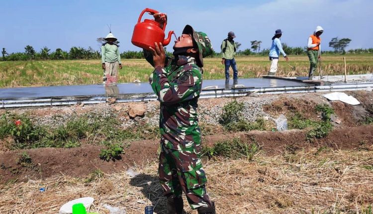 TerabasNews – KENDAL, Jumat, 18/09 – Panasnya cuaca di lokasi kegiatan anggota Satgas TMMD Reguler Ke-109 Kodim 0715/Kendal dalam pengerjaan pembangunan betonisasi jalan bersama warga masyarakat Desa Sendang Kulon sering membuat para pekerja kehausan, Rabu (19/9/2020).
