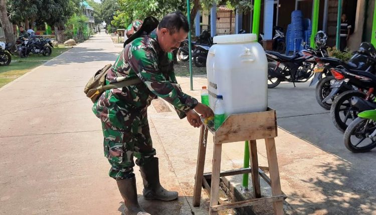 ” Kami sediakan tempat cuci tangan di berbagai tempat agar mereka menerapkan hidup bersih dan sehat sesuai anjuran pemerintah,” tutur Kapten Cpl Esti Purwanto Danramil 05/Cepiring.(Pendim 0715/Kendal)