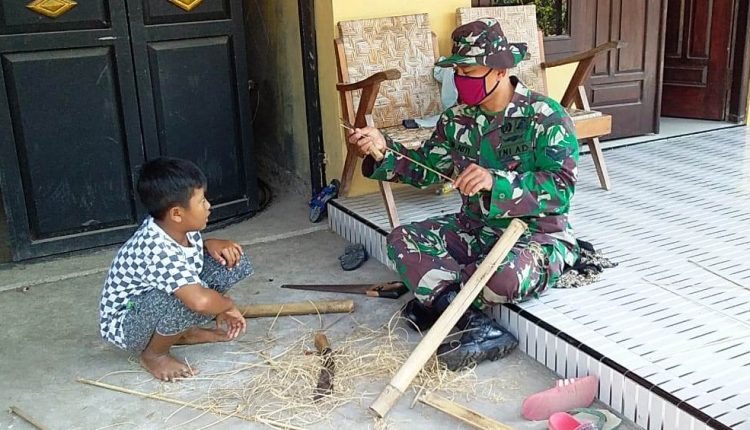 Satgas TMMD Unjuk Kebolehan Ajari Anak Anak Bikin Layangan