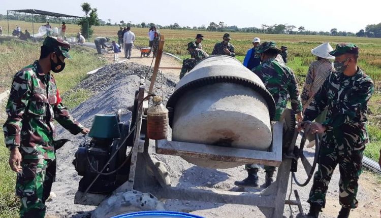 TerabasNews – KENDAL, Selasa 22/09 – Warga dan Satgas TMMD ke -109 tetap semangat melanjutkan pengecoran jalan,