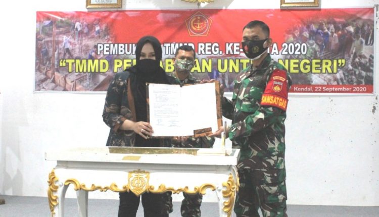TerabasNews – KENDAL, Selasa 22/09 – Pelaksanaan TMMD Reguler ke-109 Kodim 0715/Kendal di Desa Sendang Kulon, Kecamatan Kangkung, Kabupaten Kendal, Jawa Tengah, resmi dibuka oleh Bupati Kendal, dr.Mirna Annisa M.SI, Selasa (22/09/2020). Pembukaan digelar di ruang rapat ABDI PRAJA, Setda Kabupaten Kendal.
