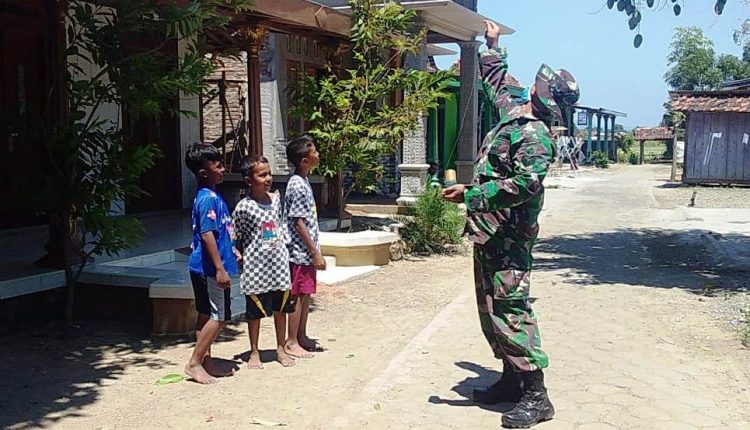“adik adik jangan lupa ya tetap pakai masker,cuci tangan,jaga jarak dan jangan lupa sholat, ” himbau Serda Rosi. (Pendim 0715/Kendal)