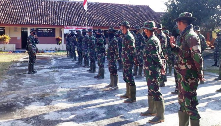 Lettu Inf Sudiono selaku Danki Satgas TMMD saat mengambil apel pengecekan personil, mengajak anggota satgas untuk sama-sama melaksanakan perintah dengan baik.