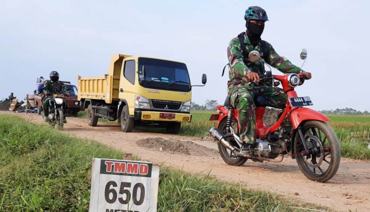 Kondisi tersebut tidak menyurutkan semangat Satgas TMMD, meki apa yang dilakukan salah satu anggota yang berangkat menuju lokasi TMMD menggunakan motor pribadi yang masuk kategori jadul atau tua.