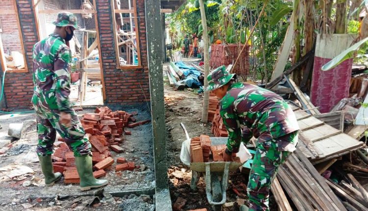 Di rumah Mugiri, di Desa Sendang Kulon RT 03 RW 02, salah satu warga yang mendapat jatah rehab RTLH di TMMD, tampak kesibukkan pekerjaan merehab rumah yang dilakukan anggota Satgas TMMD dari Yonif 410 Alugoro, Pratu Saiful Amin dengan dibantu warga.