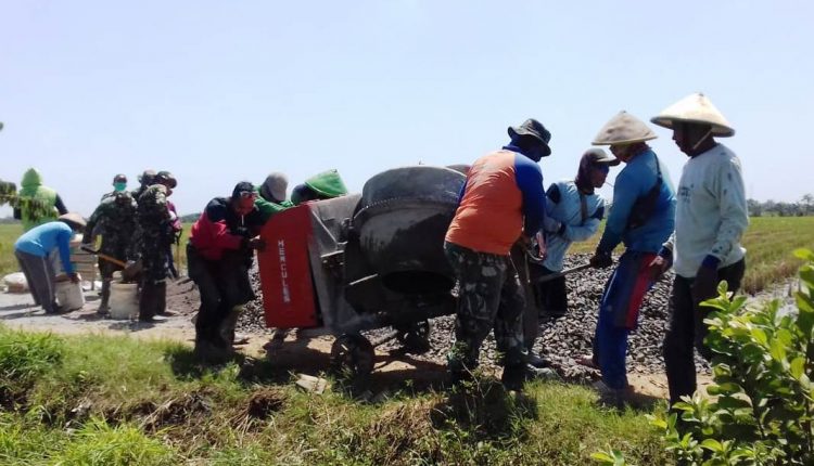 TerabasNews – KENDAL, Kamis 1/10 – qqaAnggota Satgas TMMD Reguler 109 Kodim 0715/Kendal dan warga di Desa Sendang kulon kompak memindahkan mesin molen untuk pengecoran jalan. Besi tua pengaduk semen itu menjadi andalan dalam pekerjaan.