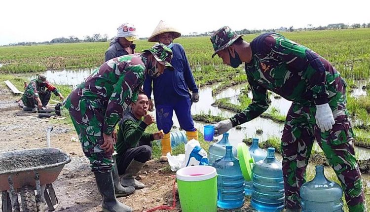 senyum sumringah terlihat jelas dari raut wajah Satgas TMMD dan warga Desa Sendang Kulon Kecamatan Kangkung ,saat antri mengambil minuman syrup. “Luar biasa mantab,seger pol, Pak TNI,”ungkap Romdoni (49) Warga Desa Sendang Kulon. (Pendim 0715/Kendal)