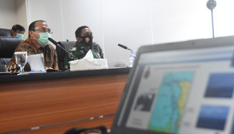 TerabasNews – PANGKALPINANG – Gubernur Kepulauan Bangka Belitung (Babel), Erzaldi Rosman didampingi Danlanal Kepulauan Bangka Belitung (Babel), Kolonel (Laut) Dudik Kuswoyo melakukan rapat virtual melalui video conference dengan Markas Besar TNI Angkatan Laut dalam hal ini Paban VI Binkuat Sopsal, Kolonel (Laut) Prio Budi Leksono, dari Ruang Vidcon Gubernur Kepulauan Bangka Belitung, Jumat (2/10/20).