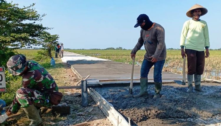 Jalan ini kita bangun dengan bergotong royong bersama warga desa dengan keterlibatan serta dukungan dari semua komponen instansi pemerintahan disini “tegas”Kapten CPL Ngesti selaku koordinator lapangan pengecoran.