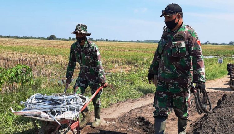 TerabasNews – KENDAL, 5/10 – Dua anggota TNI anggota Satgas TMMD di lokasi pembangunan jalan yang menjadi sasaran fisik pelaksanaan TMMD Reguler ke-109 Kodim 0715/Kendal, di Desa Sendang Kulon Kecamatan Kabupaten Kendal sering dijuluki ” Duet Maut Angka 10 “