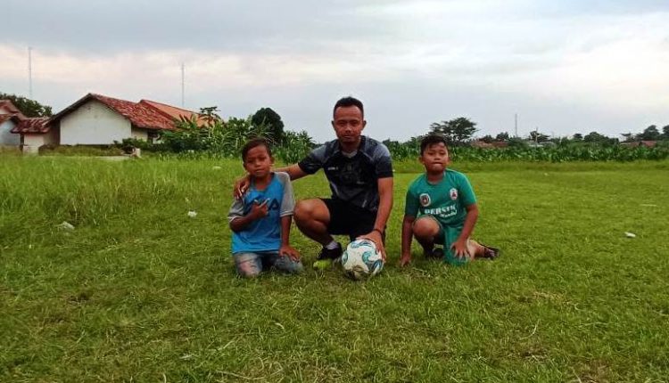 bermain sepakbola di lapangan Desa Sendang Kulon,