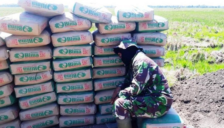 Demi Tugas TMMD, Istirahat pun Dilakukan di Samping Tumpukan Semen
