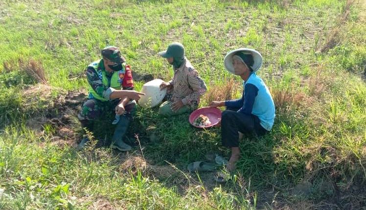Saat rehat sejenak untuk melepas lelah setelah seharian bekerja di lokasi TMMD, tak canggung lagi, Sertu Agus Hermawan menjalin kebersamaan dengan warga. Sesekali Sertu Agus menuangkan minum ke gelas milik Nasikin (46 tahun) salah seorang Warga Desa Sendang Kulon.