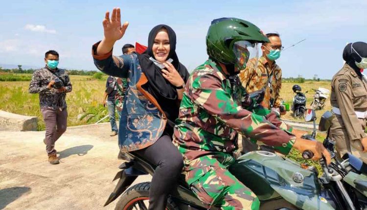 TerabasNews – KENDAL, Sabtu 10/10 – Dengan bonceng motor Babinsa, Bupati Kendal, dr Mirna Annisa, M.Si bersama Tim Wasev dari Mabesad tinjau sejumlah pekerjaan program TNI Manunggal Membangun Desa(TMMD) Reguler ke-109 Kodim 0715/Kendal desa Sendang Kulon, Kecamatan Kangkung, Kabupaten Kendal, Jawa Tengah