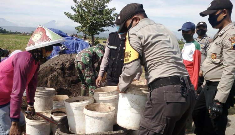 Anggota Polri Terus Terlibat di Pengecoran Jalan TMMD