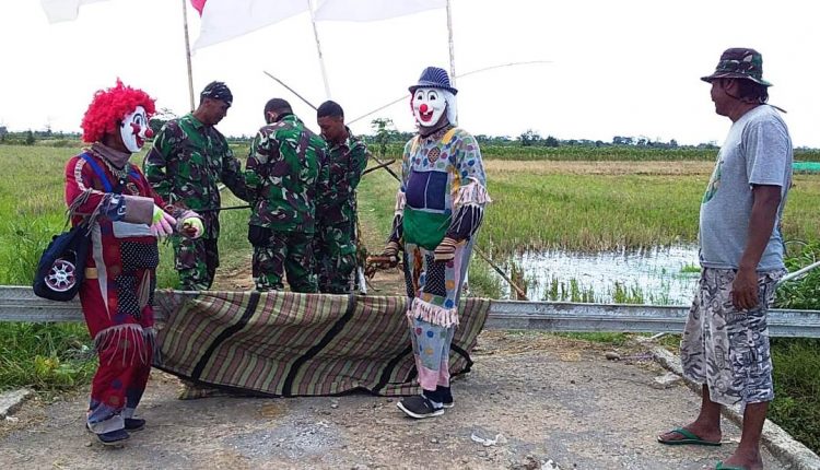Menyentuh, Badut Jalanan Datangi Lokasi TMMD dan Hibur TNI Satgas