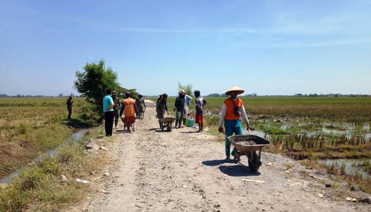 Bantu Satgas TMMD Ngecor Jalan Sambil Gembala Itik