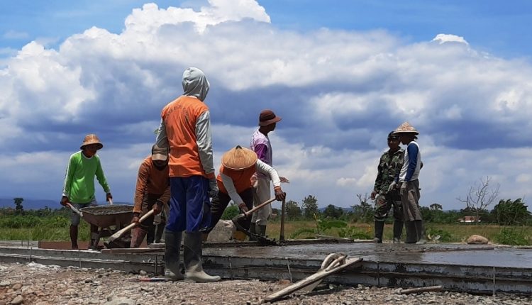 “Tugas ini harus tuntas walau harus bekerja meski harus bergelut dengan panasnya matahari,” beber Prada Raftan. (Pendim 0715/Kendal)