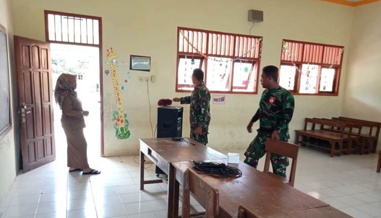 Manfaatkan Waktu Luang, Satgas TMMD Bantu Bersihkan Ruang Kelas