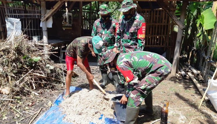 TerabasNews – KENDAL, Rabu 14/10 – Satgas TMMD reguler ke 109 Kodim 0715/Kendal tidak menyia-nyiakan waktu luangnya yang sebentar lagi sudah purna tugas melaksanakan TMMD, dengan berbagi ilmu kepada peternak kambing untuk membuat pupuk organik dari kotoran kambing di Desa Sendang kulon Kecamatan Kangkung Kabupaten Kendal.