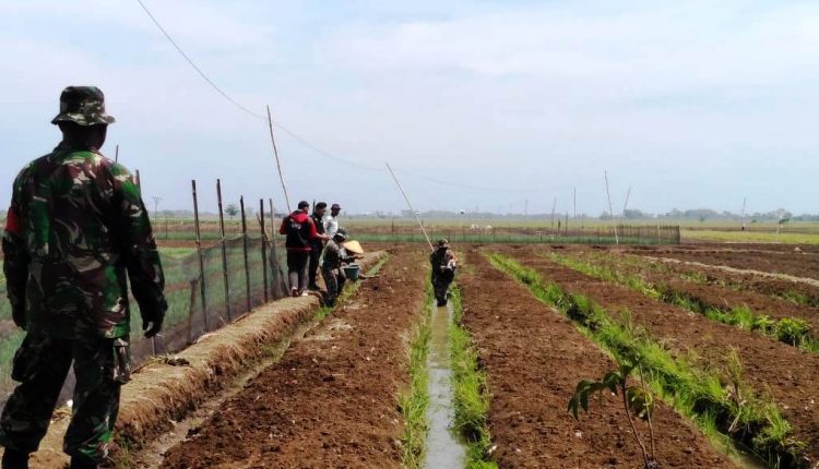 Anggota Satgas TMMD Sempatkan Bantu Petani Mupuk Tanaman Bawang