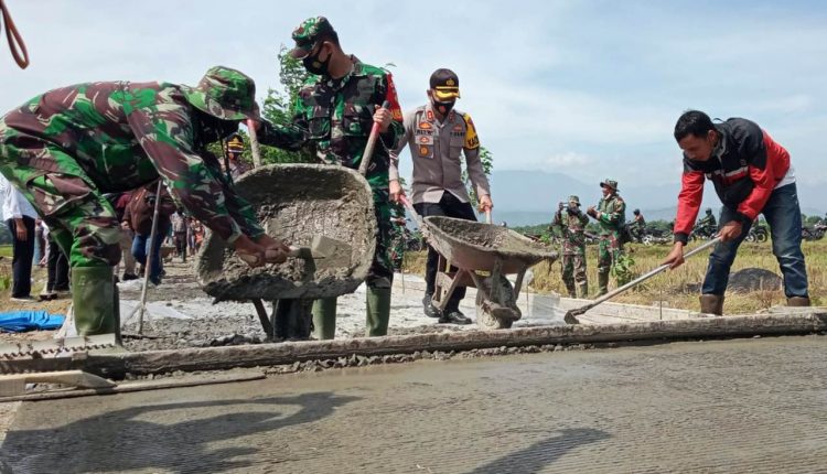 Rela Belepotan Semen Demi Jalan TMMD Sendangkulon