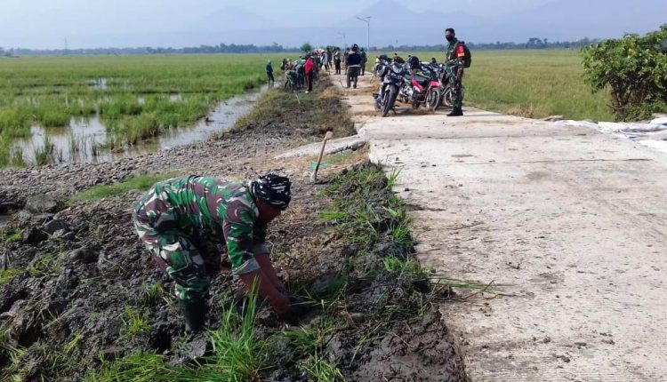 Seperti yang dilakukan Serda Abu Hanifah, anggota Koramil 05/Cepiring di saat turun ke Sendang kulon, selalu membantu warga yang merapikan bereman jalan.
