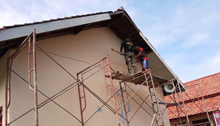 Peduli Seolah Rusak, Satgas TMMD Benahi Plafon Sekolahan yang Rusak