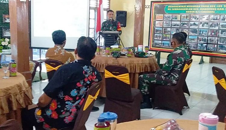 Dandim 0715/Kendal selaku Dansatgas TMMD Reguler Ke-109 Letkol Inf Iman Widhiarto S.T memaparkan tentang pelaksanaan Program mulai dari sebelum,selama dan sesudah TMMD Reguler Ke-109 berlangsung,di antaranya potensi yang dapat berkembang berkat terselenggaranya TMMD di Desa Sendang Kulon, terutama Potensi Wisata Pantai pening.