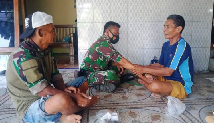 Seperti yang dilakukan salah satu satgas yaitu Sertu Anton “tangan saya sakit terkilir saat angkat material alhamdulilah mbah Juremi warga dusun pening pintar pijat saraf jadi gak usah repot cari orang di luar desa, alhamdulilah dipijat sekali sudah sembuh” ungkapnya