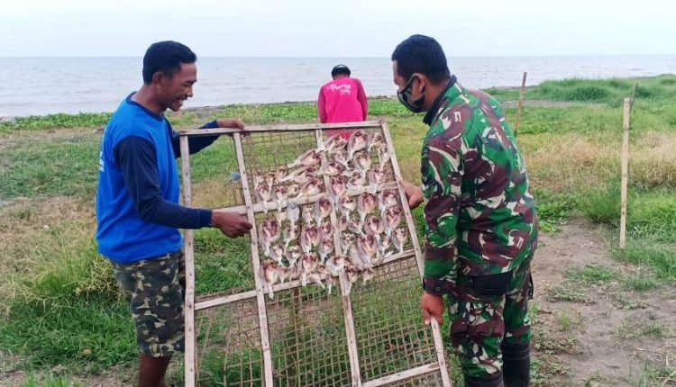 TNI Satgas TMMD Bantu Warga Jemur Ikan Asin