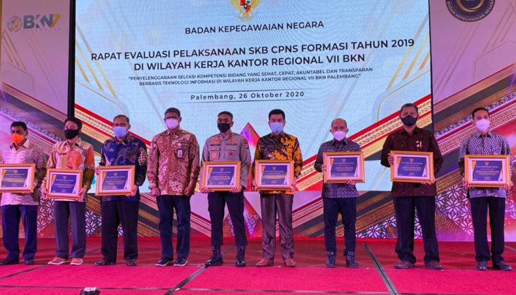 Penghargaan yang diberikan kepada Pemerintah Kota Pangkalpinang dinilai dari sehat, cepat, akuntabel dan transparan dalam pelaksanaan Seleksi Kompetensi Bidang (SKB) pengadaan CPNS tahun 2019.