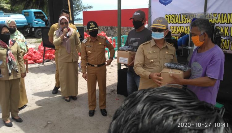 TerabasNews – Untuk menjaga masyarakat dari penyebaran virus COVID-19 Pemerintah Daerah Kabupaten Bangka melakukan kegiatan sosialisasi Protokol Kesehatan (Prokes) diantaranya pengunaan masker bagi masyarakat nelayan di pantai Rebo, Desa Rebo Sungailiat, Kabupaten Bangka, Selasa (27/10).