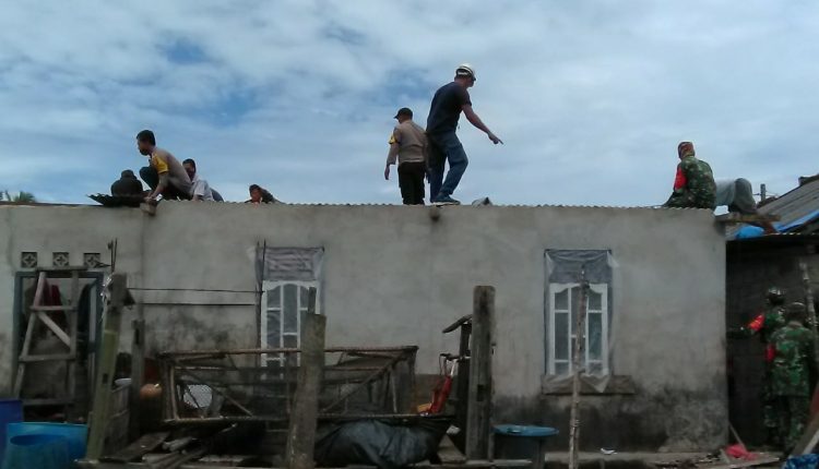 TNI Dan POLRI Bahu Membahu Perbaiki Rumah Warga Korban Puting Beliung