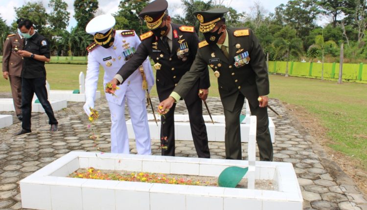 TerabasNews – Pangkalpinang – (Penrem 045/Garuda Jaya) – Dalam memperingati Hari Pahlawan ke-75 Danrem 045/Garuda Jaya Brigjen TNI M. Jangkung Widyanto. S.I.P., M.Tr.(Han) mengikuti upacara dan tabur bunga di Taman Makam Pahlawan Pawitralaya Kecamatan Pangkalan Baru Pangkalpinang Selasa 10/11/2020.