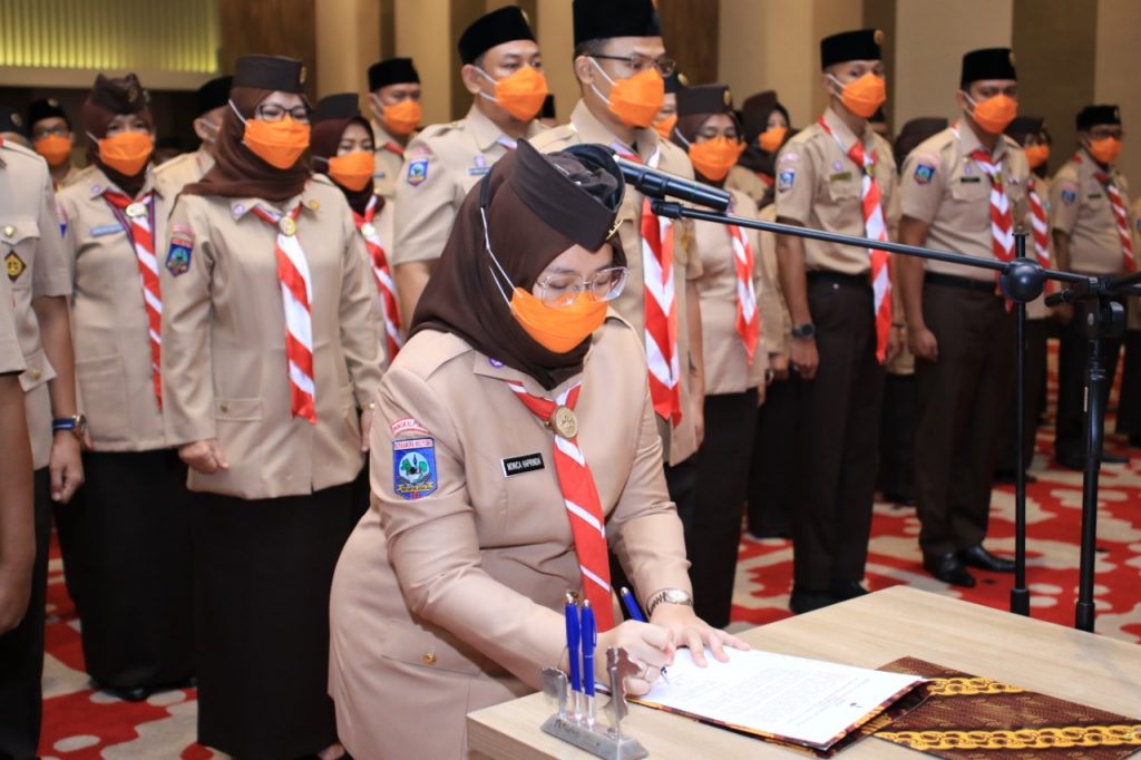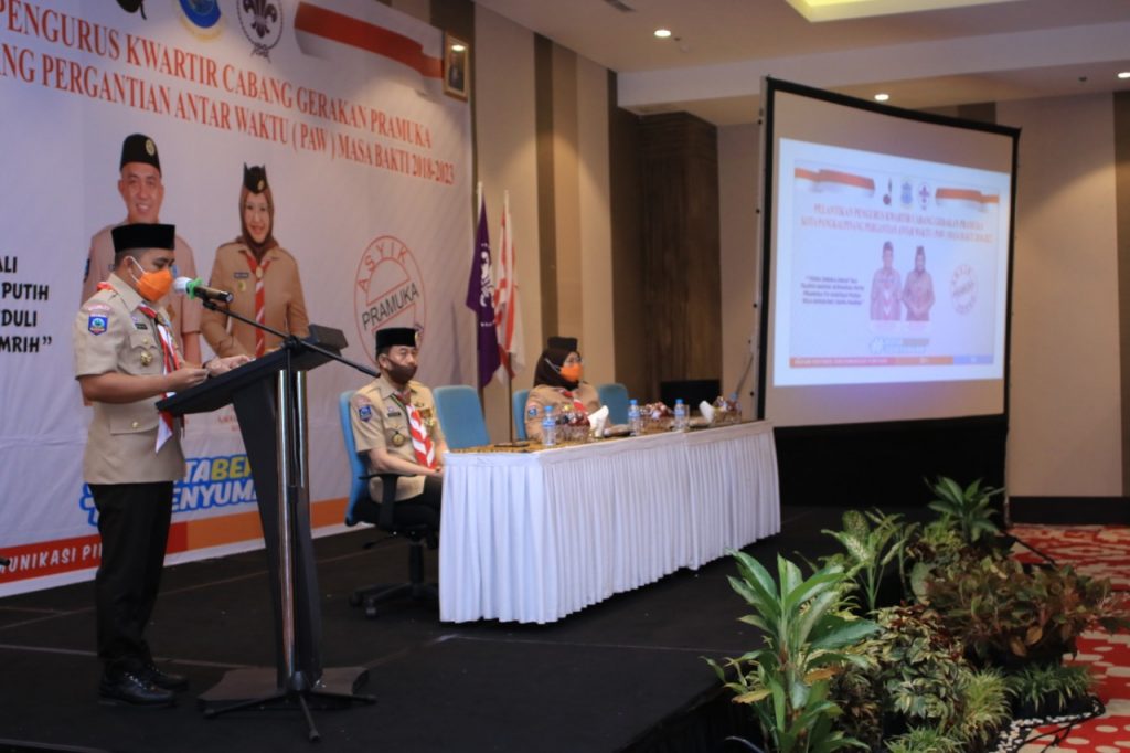 Ketua Majelis Pembimbing Cabang Gerakan Pramuka Kota Pangkalpinang, Maulan Aklil (Molen) saat membaca surat keputusan pelantikan Ketua Kwartir Cabang (Kwarcab) Gerakan Pramuka Pangkalpinang dan Andalan Kwarcab Pangkalpinang masa bakti Pergantian Antar Waktu tahun 2018 – 2023, Senin (16/11).Ketua Kwarcab Gerakan Pramuka Pangkalpinang, Monica Haprinda saat membaca ikrar sumpah jabatan, Senin (16/11)Ketua Majelis Pembimbing Cabang Gerakan Pramuka Kota Pangkalpinang, Maulan Aklil (Molen) saat menandatangani surat keputusan pelantikan Ketua Kwartir Cabang (Kwarcab) Gerakan Pramuka Pangkalpinang dan Andalan Kwarcab Pangkalpinang masa bakti Pergantian Antar Waktu tahun 2018 – 2023, Senin (16/11).