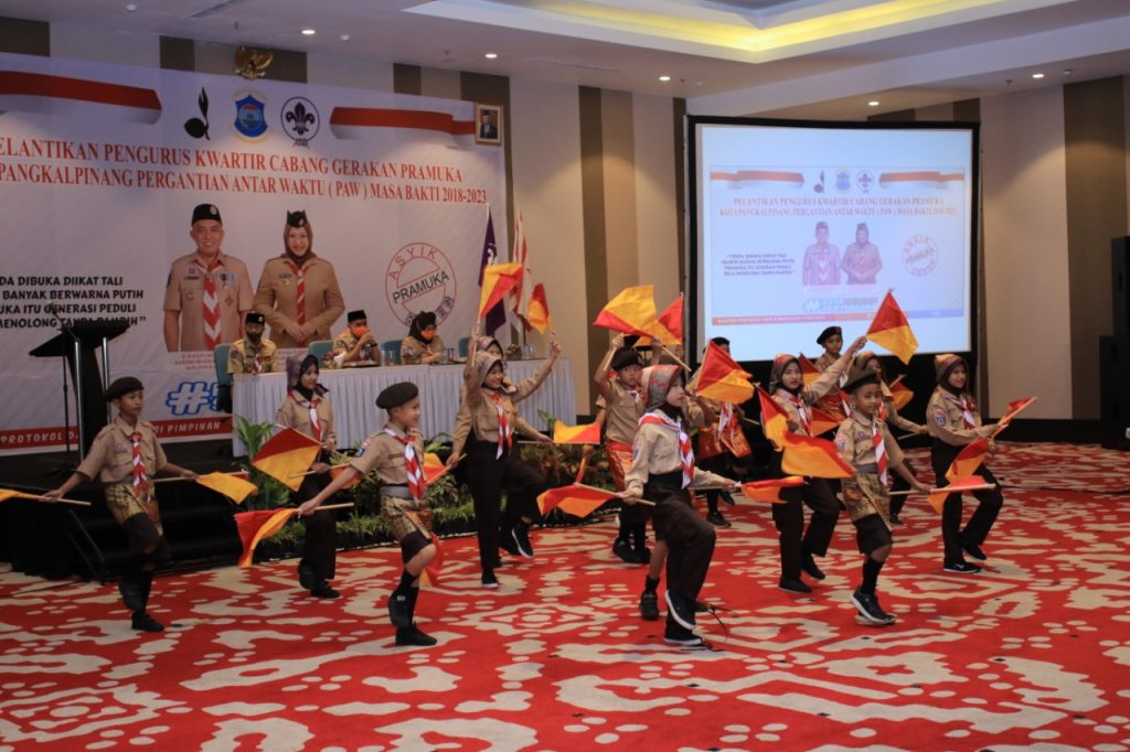 Ketua Kwarcab Gerakan Pramuka Kota Pangkalpinang, Monica Haprinda saat menandatangi surat keputusan pelantikan Ketua Kwartir Cabang (Kwarcab) Gerakan Pramuka Pangkalpinang dan Andalan Kwarcab Pangkalpinang masa bakti Pergantian Antar Waktu tahun 2018 – 2023, Senin (16/11).Ketua Majelis Pembimbing Cabang Gerakan Pramuka Kota Pangkalpinang, Maulan Aklil (Molen) saat menyematkan lencana kepada Ketua Kwartir Cabang (Kwarcab) Gerakan Pramuka Pangkalpinang dan Andalan Kwarcab Pangkalpinang masa bakti Pergantian Antar Waktu tahun 2018 – 2023, Senin (16/11).Ketua Majelis Pembimbing Cabang Gerakan Pramuka Kota Pangkalpinang, Maulan Aklil (Molen) saat memberikan sambutan pada kegiatan pelantikan Ketua Kwartir Cabang (Kwarcab) Gerakan Pramuka Pangkalpinang dan Andalan Kwarcab Pangkalpinang masa bakti Pergantian Antar Waktu tahun 2018 – 2023, Senin (16/11).Ketua Kwarcab Gerakan Pramuka Kota Pangkalpinang, Monica Haprinda saat memberikan sambutan pada kegiatan pelantikan Ketua Kwartir Cabang (Kwarcab) Gerakan Pramuka Pangkalpinang dan Andalan Kwarcab Pangkalpinang masa bakti Pergantian Antar Waktu tahun 2018 – 2023, Senin (16/11).Penggalang Pramuka dari SDN 15 Pangkalpinang saat mempersembahkan tarian pada kegiatan pelantikan Ketua Kwarcab Gerakan Pramuka Kota Pangkalpinang, Senin (16/11)