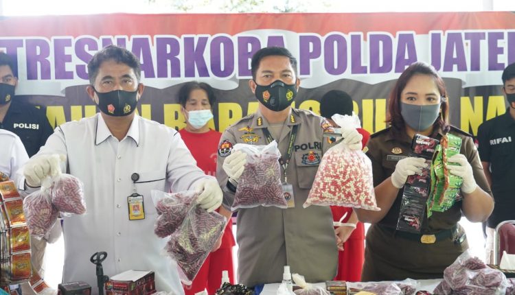 Pers Rilis dipimpin oleh Direktur Diresnarkoba Polda Jateng, Kombes Pol Ig Agung Prasetyoko, dan dihadiri oleh Kabid Humas Polda Jateng Kombes Polisi Iskandar Fitriana Sutrina, Jaksa Fungsional kejati Novi Amelia, serta disaksikan Pengawas Farmasi Makanan BPOM Jateng Mustofa, Kasubid Kimbiofor Jateng AKBP Arif Budiarto, Kasiwas Tahti BNNP Jateng Suryanto.