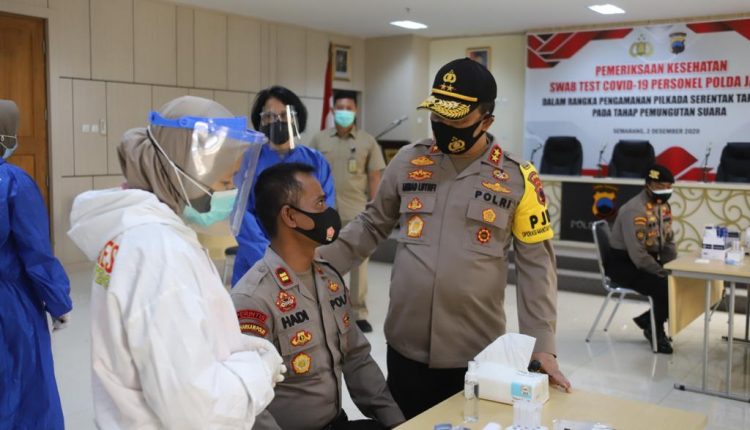 “Polda Jateng melakukan tes swab kepada anggota yang terlibat dalam pengamanan Pilkada serentak 2020 di Jawa Tengah tujuanya agar personil selalu sehat dan dapat membantu pengamanan Pilkada dengan maksimal.”ucap Kapolda Jateng