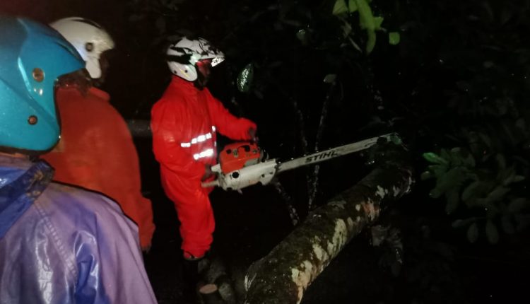 Polsek dan BPBD Limpung dengan cepat evakuasi pohon rambutan yang tumbang dibadan jalan